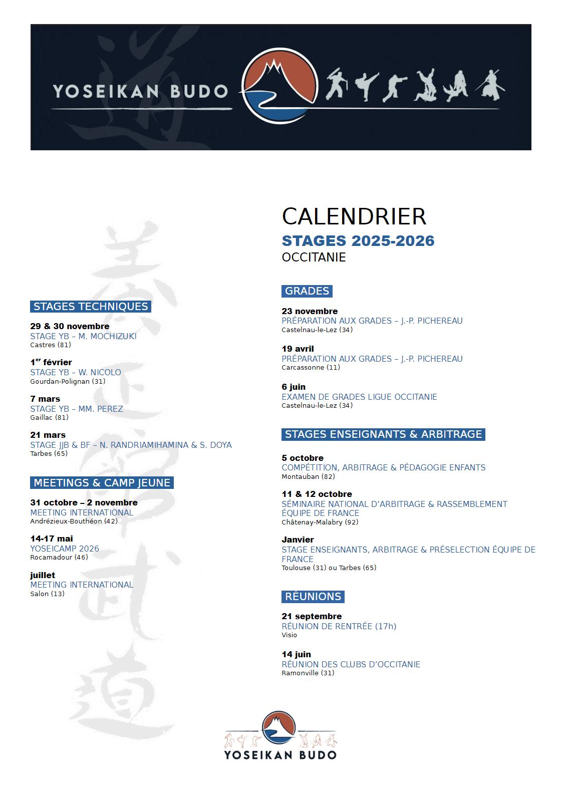 Yoseikan Budo - Occitanie - Calendrier 2025-2026 - Technique